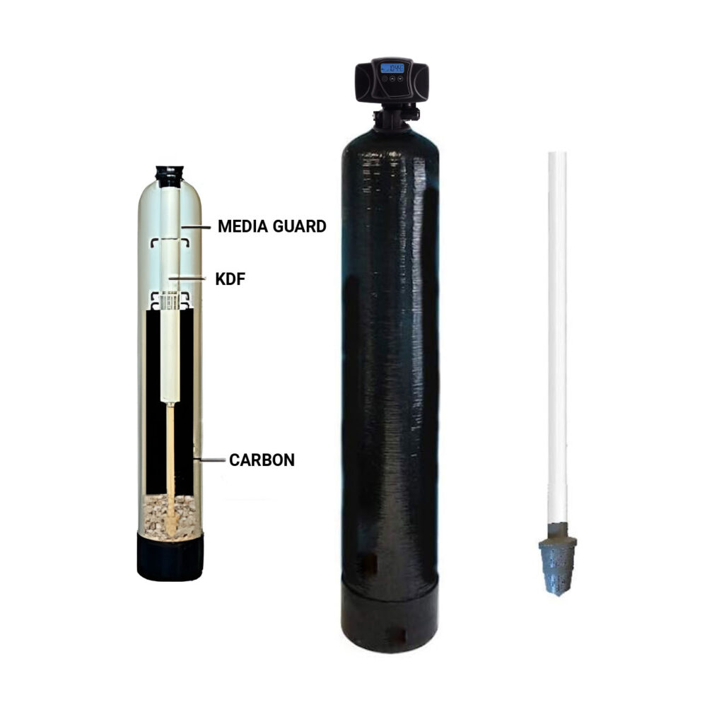 WHOLE HOUSE WATER FILTRATION SYSTEM | 1.5 cu ft Catalytic Carbon + KDF 55 | 10" x 54" Backwash Valve