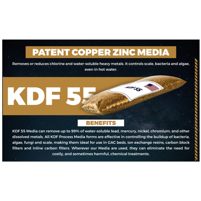 KDF 55/GAC Granular Activated Carbon Cartridge (4.5″ x 10″): The KDF 55 media in this cartridge is highly effective at removing or reducing chlorine and heavy metals from your water supply. It also eliminates organic compounds, ensuring safer and better-tasting water.