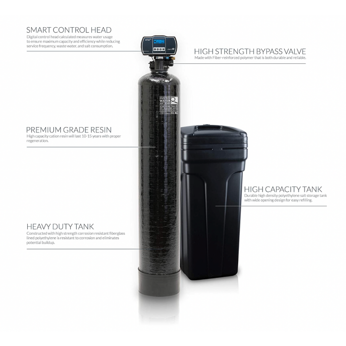The system can treat up to 48,000 Grain of hardness, perfect for household size of 3-4 bathrooms and up to 5 people. Its built-in advanced digital control console allows precise backwashing only when it’s needed, saving hundreds of gallons of water.